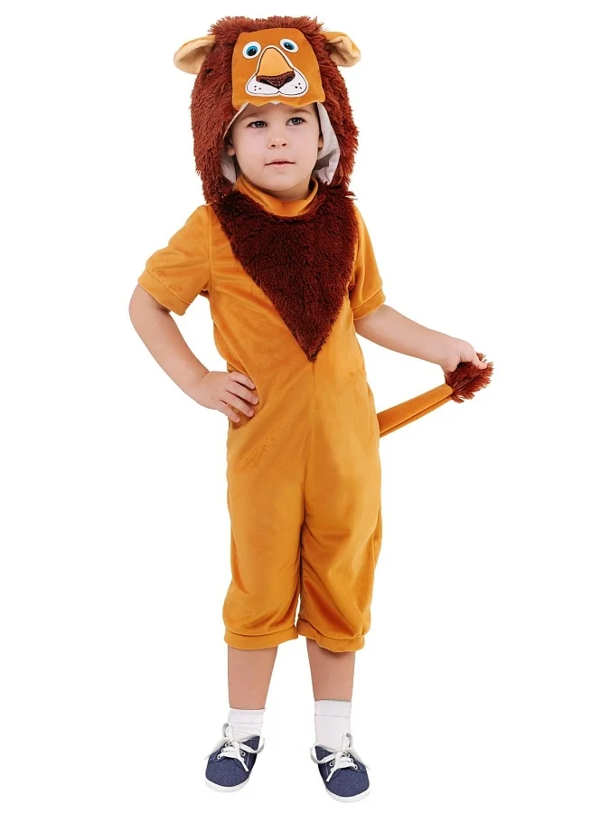 Костюм Львенка для мальчика от 3 до 5 лет плюшевый в коричневой расцветке. Замечательный образ для различных костюмированных мероприятий и выступлений. Костюм льва подойдет на утренник в детский сад, новогоднюю елку или спектакль. Комплект костюма Львенка для малыша состоит из комбинезона и шапочки-маски.