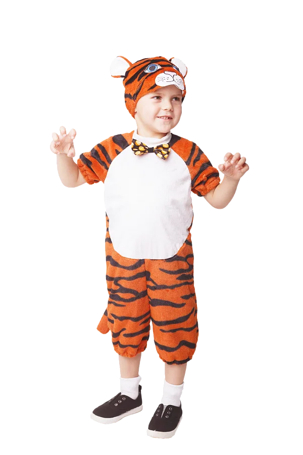 Именно таким и должен быть карнавальный костюм для активного и жизнерадостного мальчика – оригинальным, интересным и веселым. Образ Тигренка Тимки обязательно понравится ребенку, и он с удовольствием пойдет в нем на Новый год, детский Хэллоуин, день Рождения. В комплекте наряда комбинезон и шапочка в полоску.
