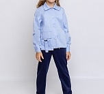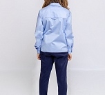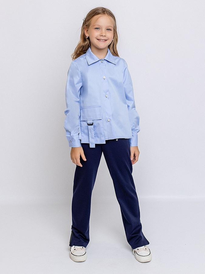 Необычный вариант классической блузки - укороченная свободная модель с оригинальным отдельным карманом по нижнему краю изделия. Хлопковая голубая блузка с длинным рукавом с манжетами застегивается на пуговицы. Отложной воротник с застежкой под горло. Легкая красивая блузка выполнена из плотной качественной ткани, которая проста в уходе, хорошо держит форму, идеальна для повседневной носки на каждый день.
