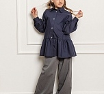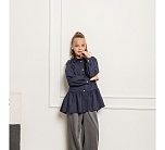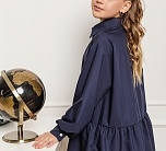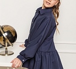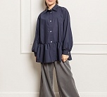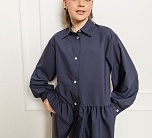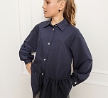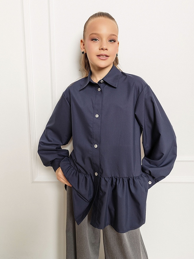 Темно-синяя широкая рубашка с романтичной оборкой. Объемный силуэт – свободный крой для комфорта и модного oversize-эффекта. Очаровательная оборка по подолу – акцент, создающий воздушный образ. Классический отложной воротник подчеркивает аккуратность и стиль. Длинные рукава – универсальный вариант для любого сезона. Застежка на пуговицах. Идеальная база для школьного и праздничного гардероба. Качественный материал – приятный к телу, хорошо держит форму. Универсальность – сочетается с юбками, шортами, джинсами и сарафанами.