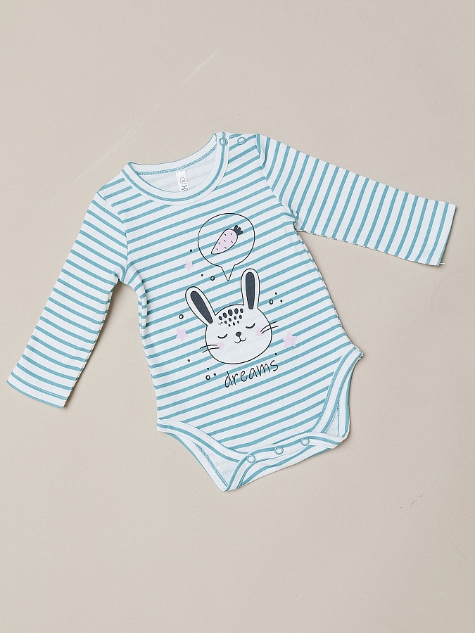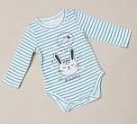 Боди с длинным рукавом для девочки в голубую полоску с рисунком. Идеальный выбор для новорожденных. Летнее хлопковое изделие создано с учетом всех потребностей малышей. Горловина и зона подгузника на кнопках.