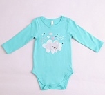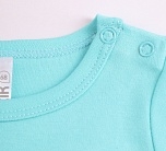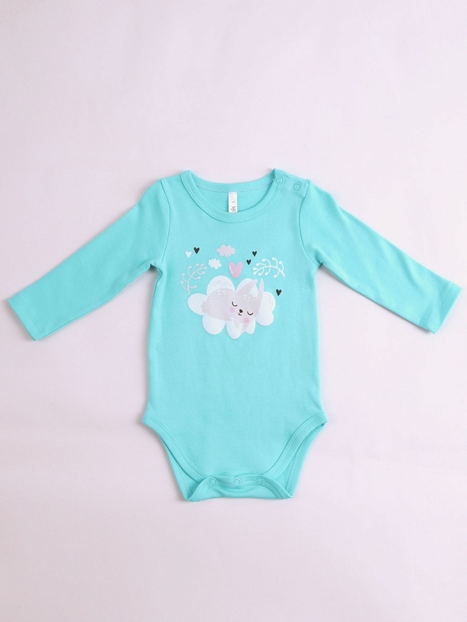 Боди с длинным рукавом для новорожденных и детей до 1 года. Выполнено из прочного хлопкового трикотажа - интерлока. Голубая расцветка, принт на груди в виде спящего зайки. Кнопки на горловине и внизу.
