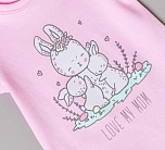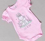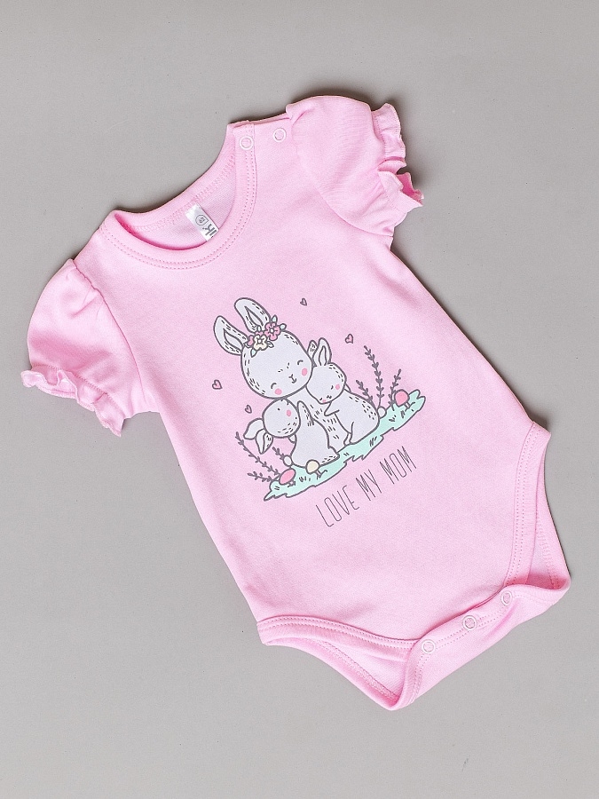 Боди с коротким рукавом розовое для новорожденных из натурального хлопка с принтом в виде семьи зайчат. Боди для девочек на выписку выполнено из интерлока, хорошо вентилируется и не раздражает нежную кожу малыша. Модель выполнена с короткими рукавами-фонариками.