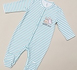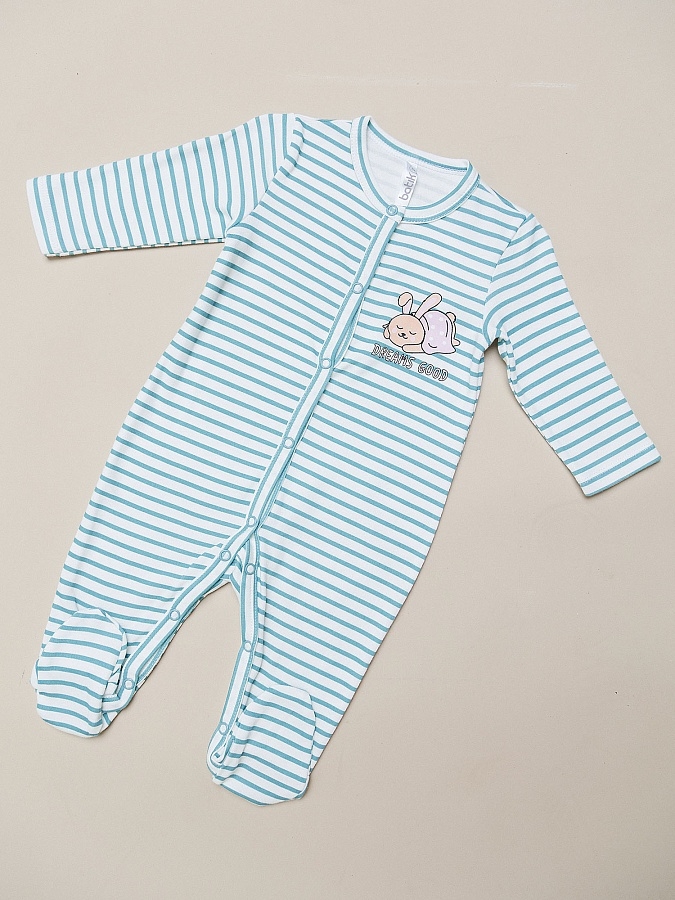 Комбинезон для девочки трикотажный с длинным рукавом. Стильный и удобный комбинезон для малыша с застежкой на кнопки по центру и закрытым носочком. Удобен для дома и ежедневного использования. Принт в полоску и очаровательный рисунок.