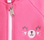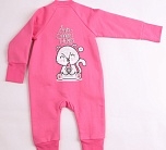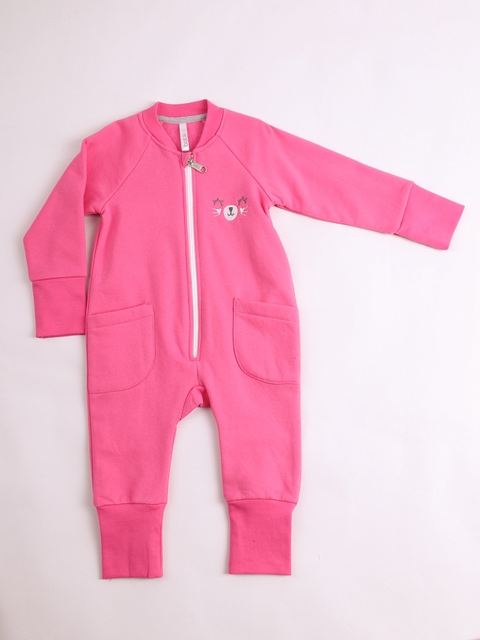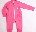 Комбинезон для новорожденных с длинным рукавом розовый. Застежка на молнию по центру, открытая ножка. Эластичные манжеты рукавов и штанин. Тип ткани - футер с начесом (натуральный хлопок). На груди небольшой рисунок, есть карманы.