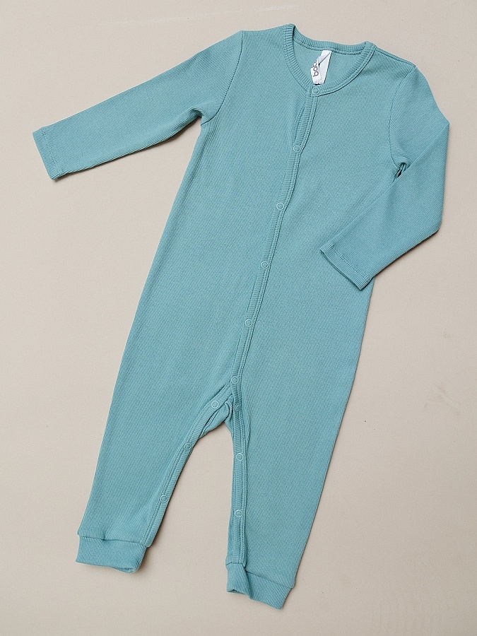 Комбинезон batik для мальчика из натурального хлопка. Уютный комбинезон из ткани кашкорсе для новорождённого на безопасных кнопках по центру. Однотонная расцветка, закрытый носочек и круглая горловина.