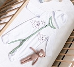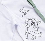 Комплект для новорожденного трикотажный на выписку: комбинезон и шапочка. Комбинезон белый на кнопках с принтом Looney Tunes.