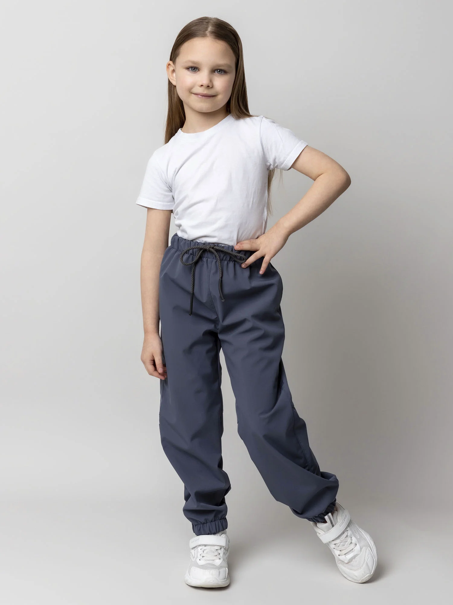 Джоггеры — практичная и удобная модель для активных прогулок и повседневной носки. Выполнены из мембранной ткани, которая защищает от ветра и влаги, оставаясь лёгкой и комфортной.