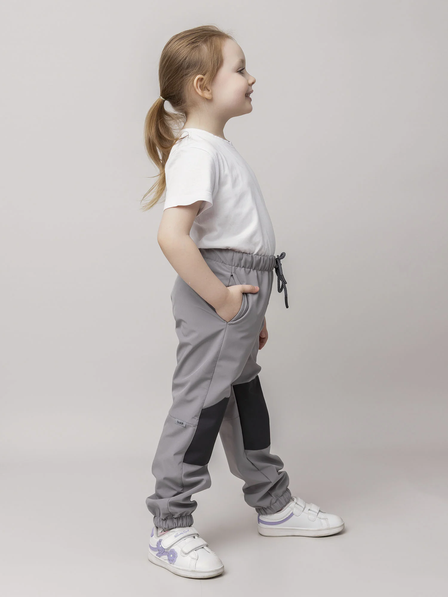 Джоггеры — практичная и удобная модель для активных прогулок и повседневной носки. Выполнены из мембранной ткани, которая защищает от ветра и влаги, оставаясь лёгкой и комфортной.