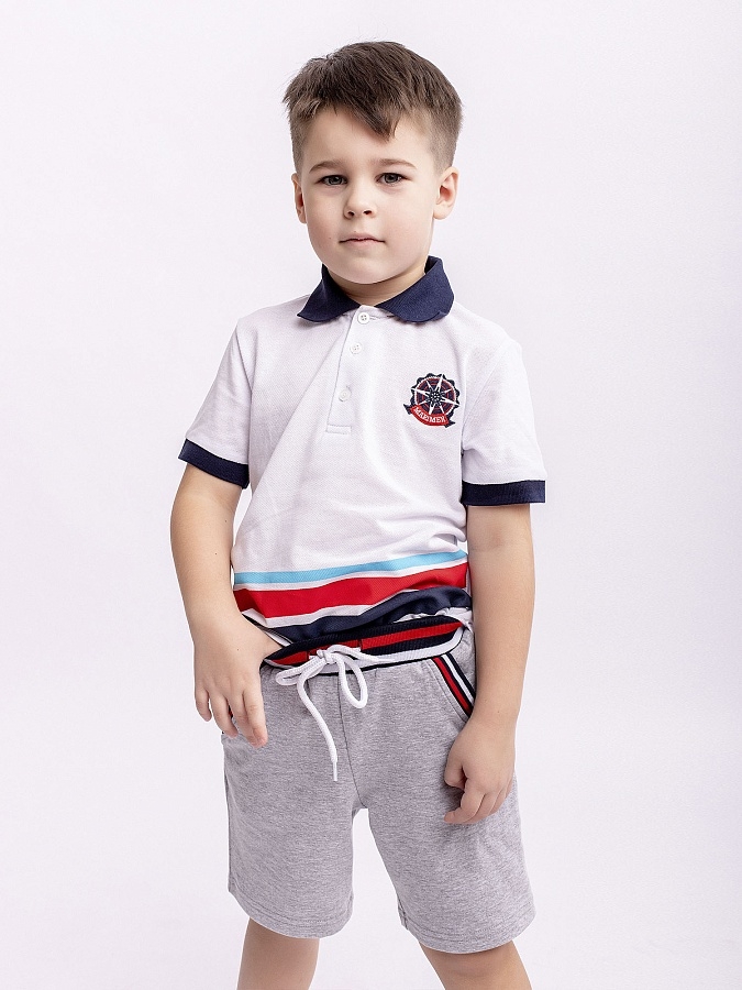 Шорты для мальчика серые со шнурком в поясе и карманами по бокам.