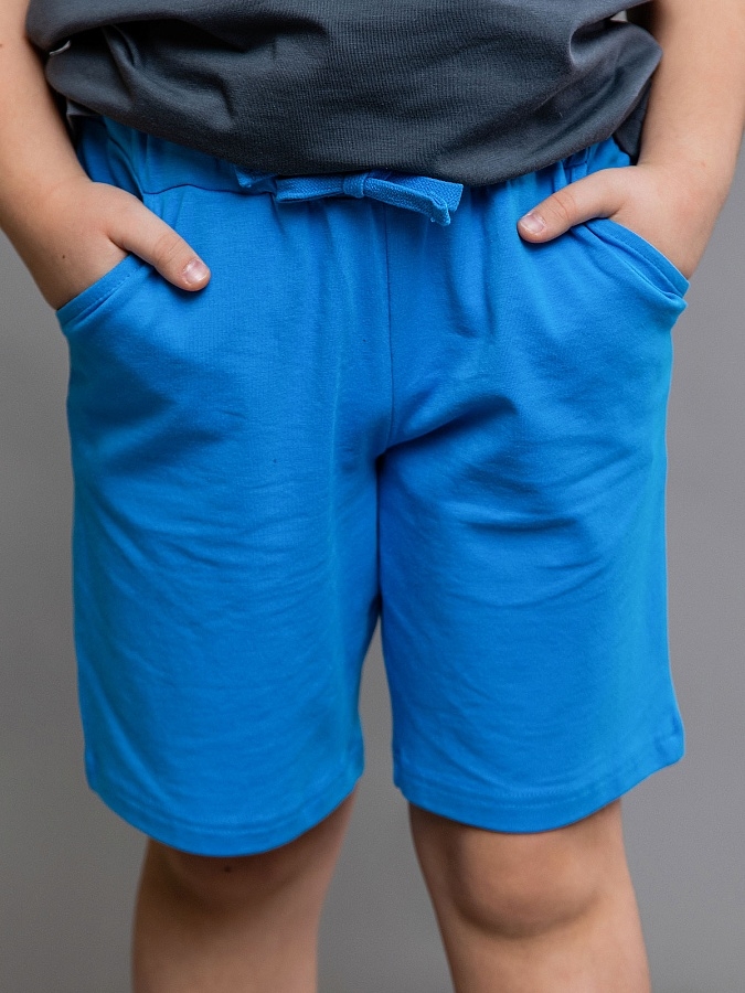Шорты для мальчика синие из футера однотонные. Трикотажные шорты яркой расцветки станут отличным дополнением к физкультурной форме. Мягкий хлопковый трикотаж. Свободный крой, средняя посадка, эластичный пояс с кулиской.
