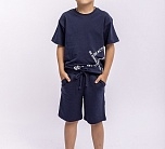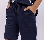 Шорты для мальчика синие из футера вы можете купить в нашем интернет-магазине по низкой цене. Шорты имеют карманы, эластичный пояс со шнурком. Расцветка однотонная.