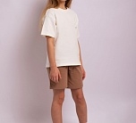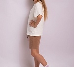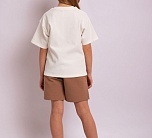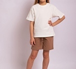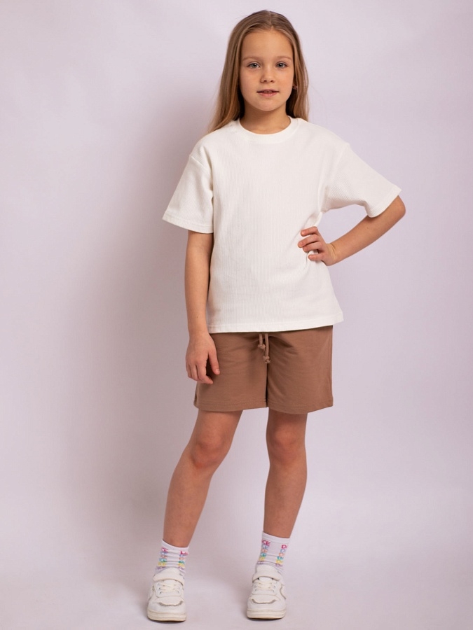 Шорты удлиненные для девочки бежевые из футера. Шорты для девочек из хлопкового футера 2-х нитки без начёса. В поясе шнурок для регулировки объема.
