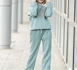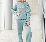 Брюки для девочки Венси из футера с начесом. Расклешенный крой, пояс со шнурком, стрелки.