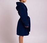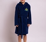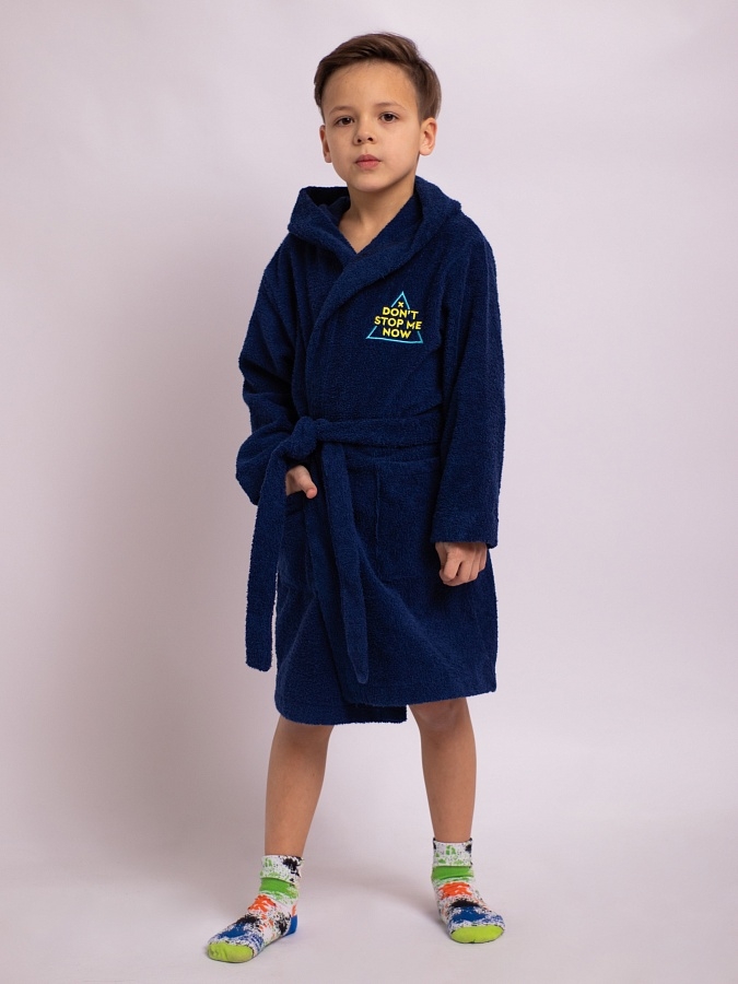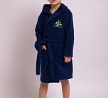 Халат синий детский с капюшоном из двусторонней махры. Стильный, яркий, красивый халат с нашивкой на груди. Модель домашнего халата с поясом на талии и двумя удобными накладными карманами. Халат махровый для мальчика от Batik. Мягкий и пушистый банный халат из 100% хлопка является экологичным и гипоаллергенным.