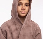 Халат вафельный какао детский с капюшоном, поясом и карманами. Новая серия детских банных вафельных халатов выполнена из качественного 100% хлопка, ткань быстро впитывает влагу и дарит тепло и уют.