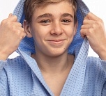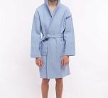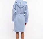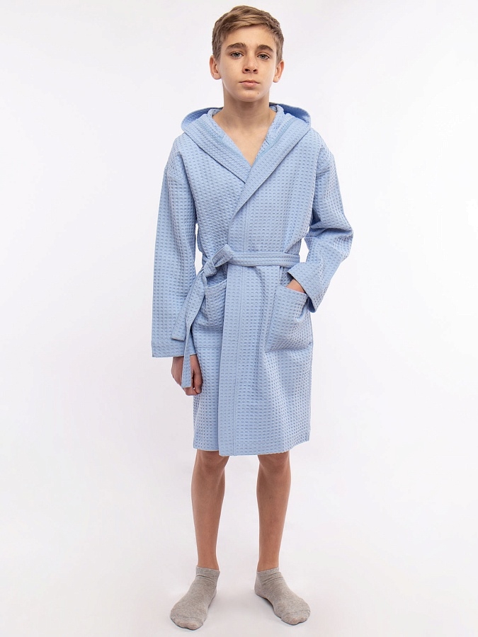 Халат вафельный голубой детский с капюшоном, поясом и карманами. Новая серия детских банных вафельных халатов выполнена из качественного 100% хлопка, ткань быстро впитывает влагу и дарит тепло и уют.