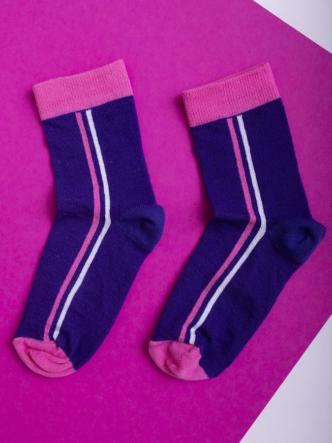 Носки детские фиолетовые в розовую полоску. Спортивные для девочек подойдут для активного отдыха и повседневной носки. Имеют отличную посадку, которая гарантирует, что они не будут сползать и не вызовут дискомфорт во время движения.