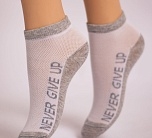 Носки детские укороченные бело-серые с рисунком в виде надписи. Благодаря эластичной резинке, носки надежно фиксируются и не сползают с ноги. Модные носочки гармонично сочетаются с любой одеждой.