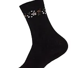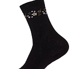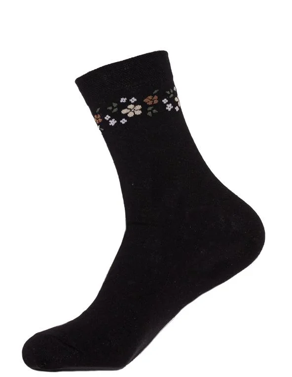 Носки женские черные с цветочным рисунком в верхней части. Размеры 23 и 25. Посадка высокая. Носки производятся на итальянском оборудовании марки "Lonati", для создания ярких рисунков используется лайкра производства Польши.