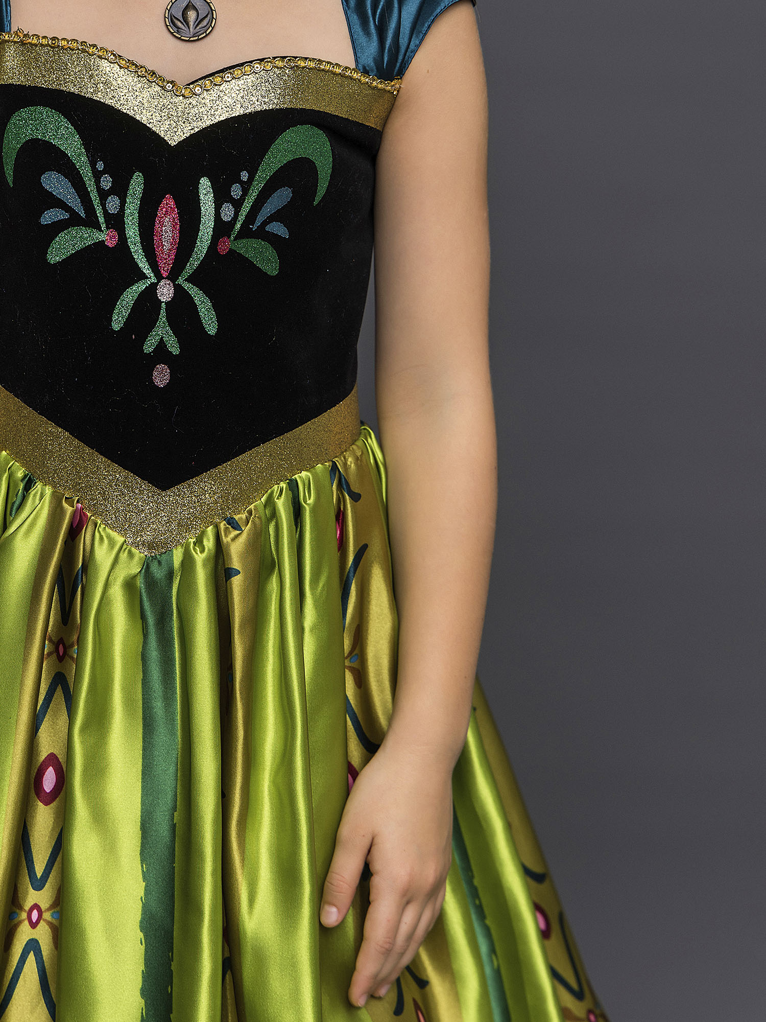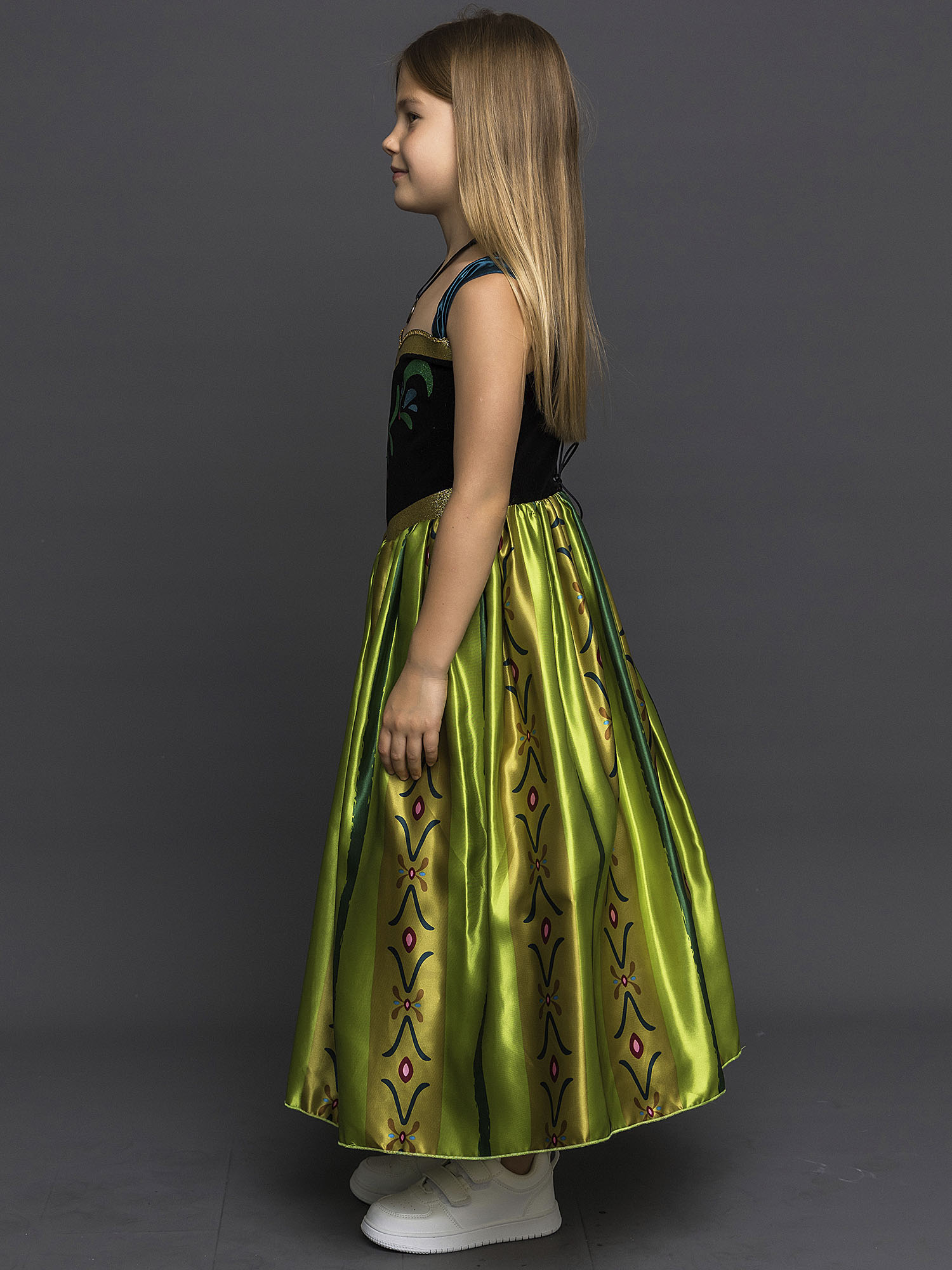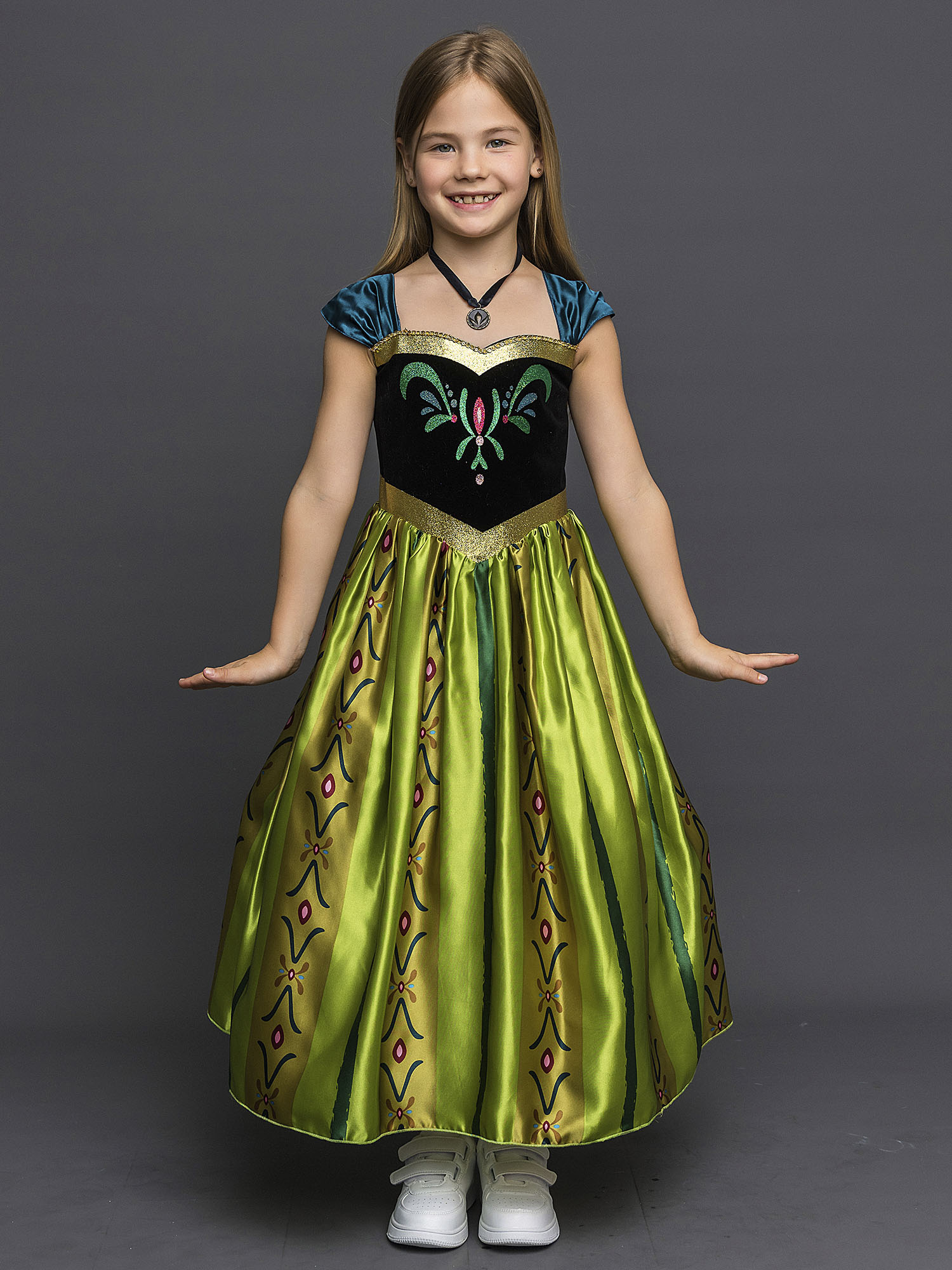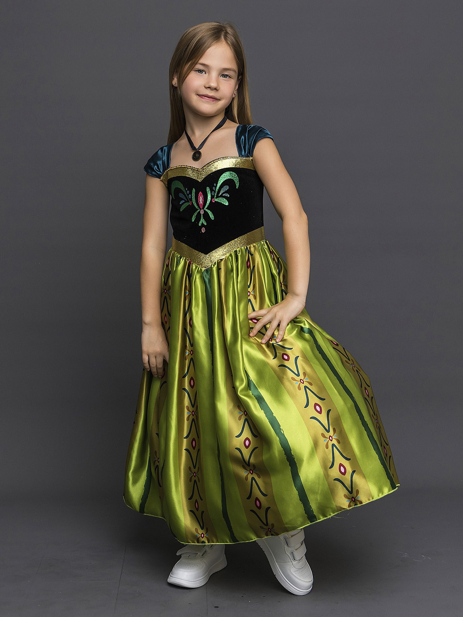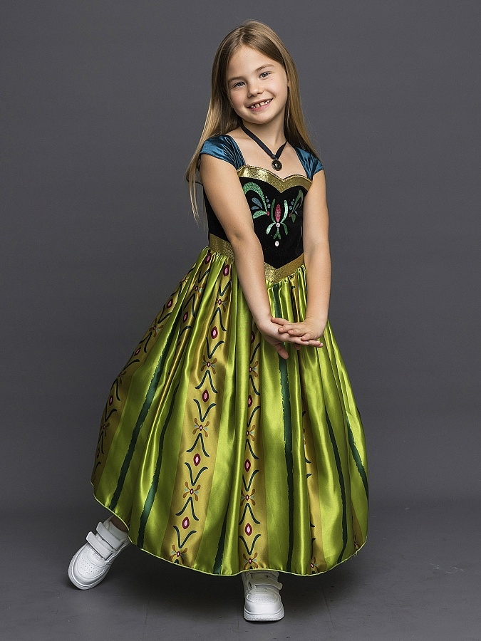 Костюм Анны из Холодного сердца для девочек — очаровательный наряд для маленьких принцесс! В комплект входит красивое платье в фирменных цветах героини и стильный кулон. Платье украшено узорами, напоминающими мотивы из мультфильма, а мягкая ткань обеспечивает комфорт при носке. Идеально подходит для праздников, карнавалов и тематических фотосессий.