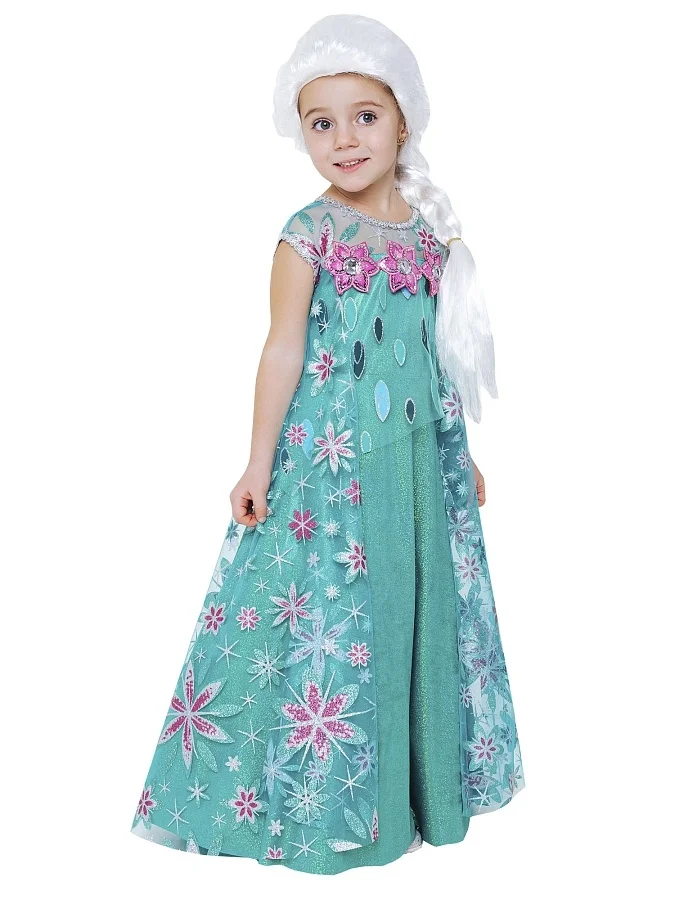 Костюм Эльза в зеленом цвете из лицензионной коллекции Дисней бренда Пуговка. Нежный весенний наряд королевы Эльзы захочет примерить любая юная поклонница мультфильма "Холодное сердце". В комплект входит платье и парик.