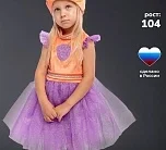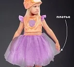Костюм детский Котенка Жемчужинки для девочек. Яркий оранжево-розовый наряд идеален для тематических праздников, утренников и фотосессий. Устройте костюмированное чаепитие для девочек по мотивам мультика "Королевские питомцы". Костюм сшит по лицензии с компанией Дисней. В комплекте платье и шапка-маска.