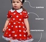 Костюм Минни Маус детский на годик (размер 74). Очаровательный костюмчик красного цвета в белый горошек. Комплект состоит из платья и маски.