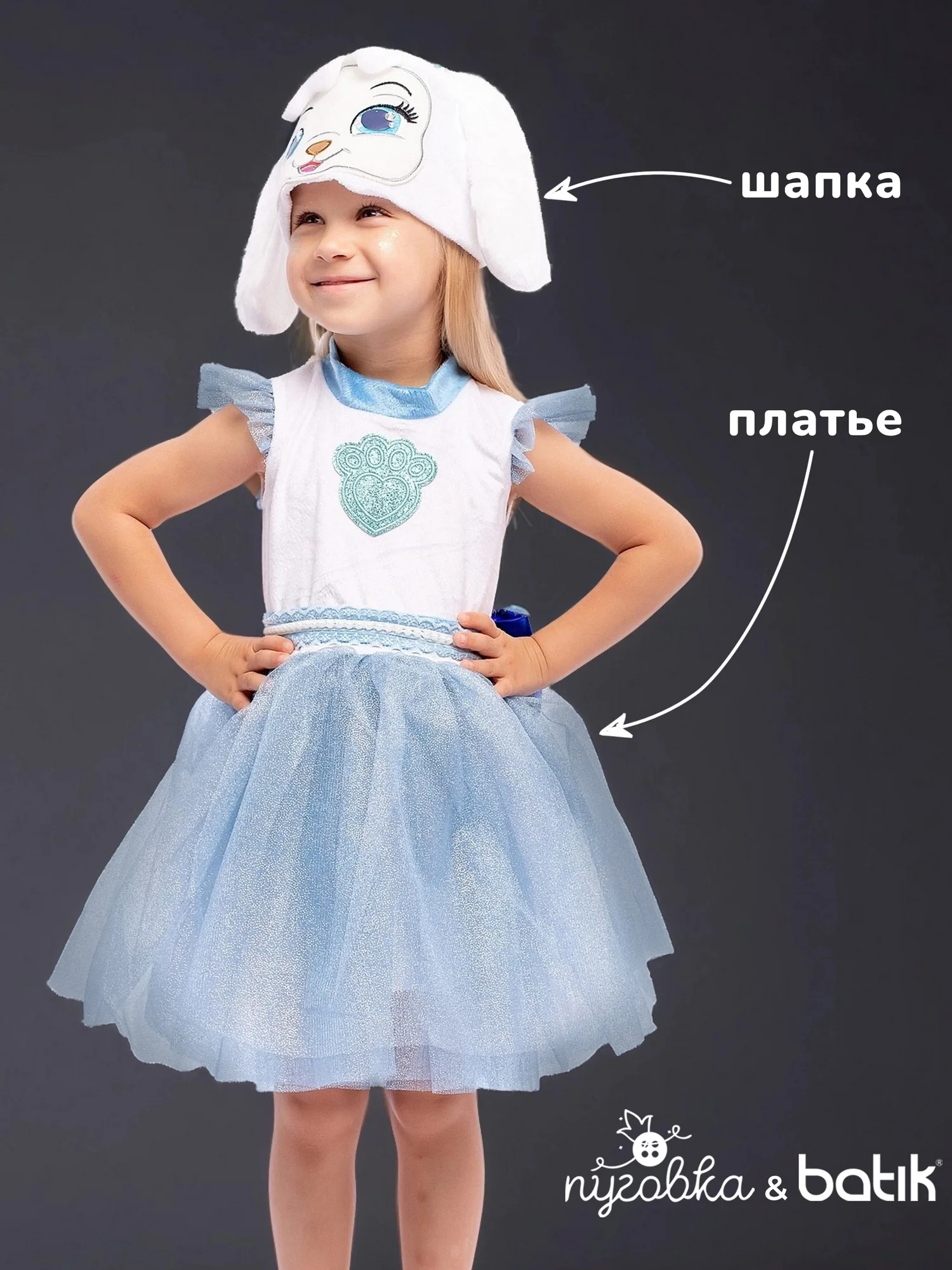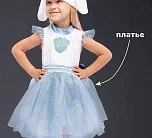 • Верх платья белый с голубой нашивкой, юбка блестящая голубая