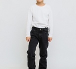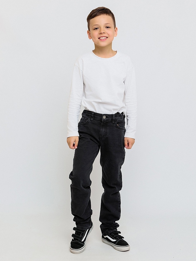Базовые прямые джинсы со средней посадкой. Деним из натурального хлопка с добавлением эластана для максимального комфорта. Классическая модель подойдет как девочкам, так и мальчикам. Брюки будут гармонично смотреться с объемным верхом кроя оверсайз. Два прорезных кармана спереди, кармашек для мелочи, два накладных кармана сзади.Застежка на молнию и пуговицу, пояс с резинкой для регулировки обьема, шлевки для ремня.