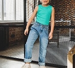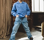 Базовые прямые джинсы со средней посадкой. Деним из натурального хлопка с добавлением эластана для максимального комфорта. Классическая модель подойдет как девочкам, так и мальчикам. Брюки будут гармонично смотреться с объемным верхом кроя оверсайз. Два прорезных кармана спереди, кармашек для мелочи, два накладных кармана сзади. Застежка на молнию и пуговицу, пояс с резинкой для регулировки обьема, шлевки для ремня.