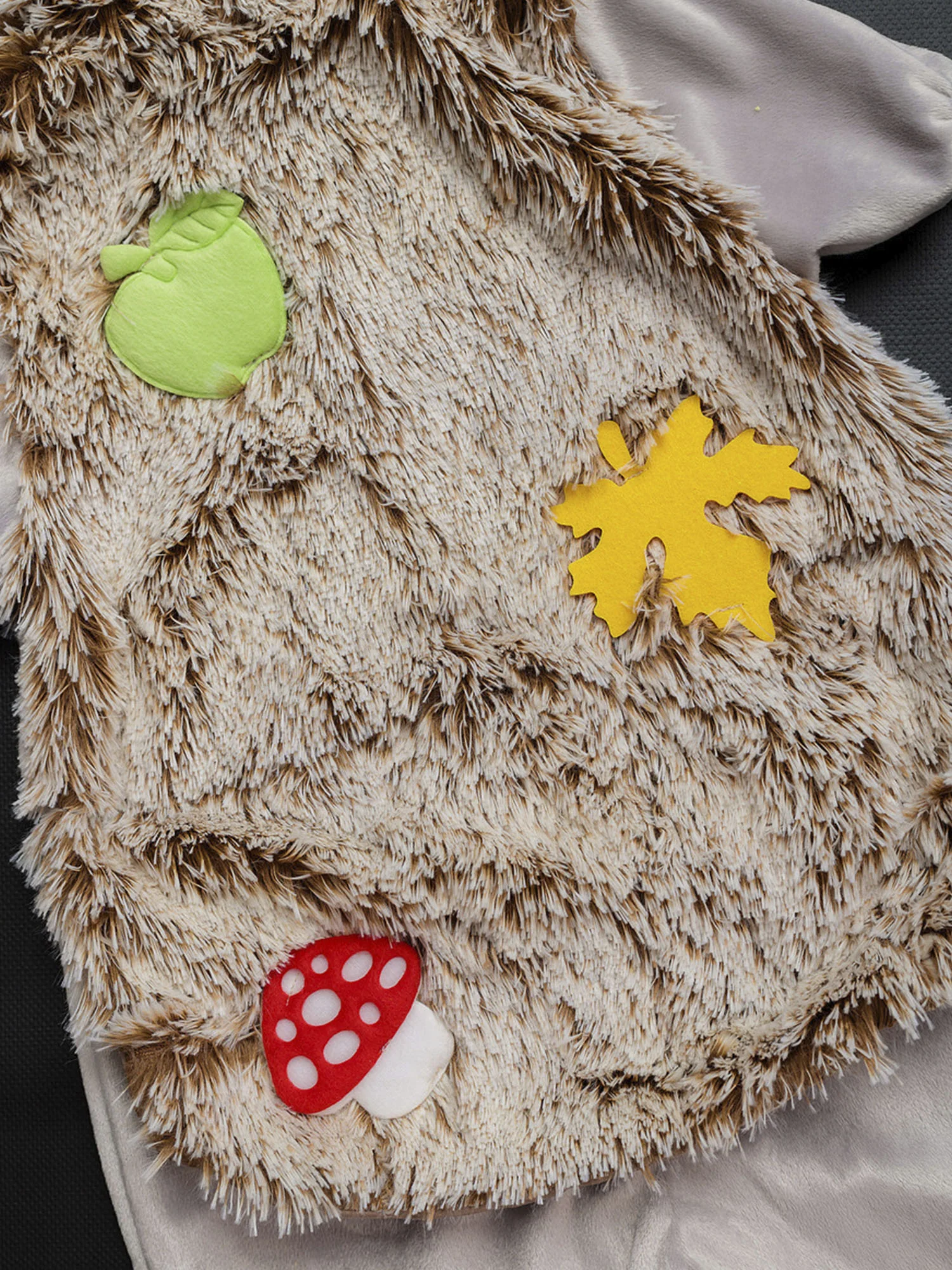 • Спинка и капюшон из плюша с длинным ворсом, имитирующим иголки