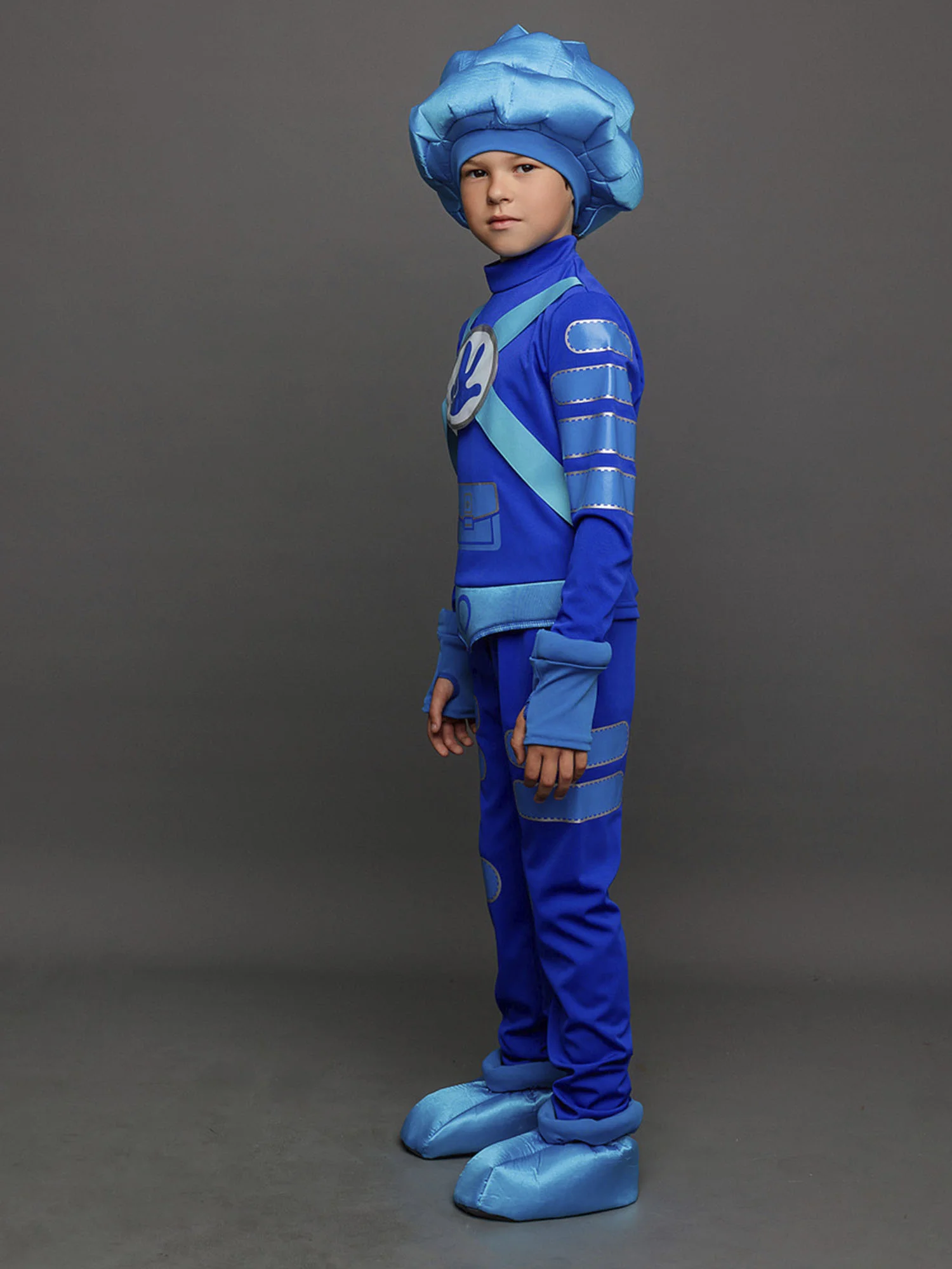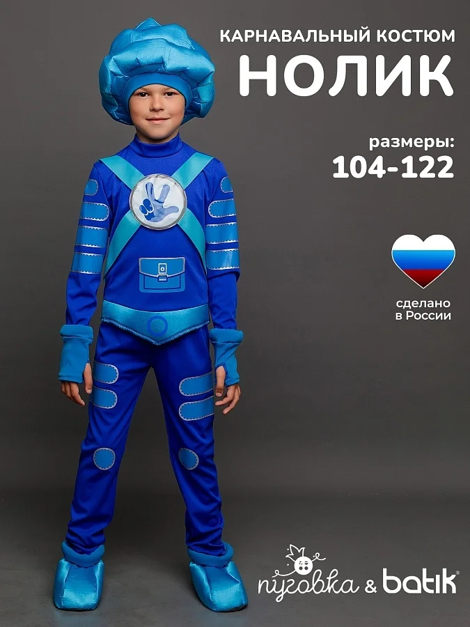 Костюм Нолика из «Фиксиков» ждет вас в нашем интернет-магазине! Замечательный образ понравится всем маленьким поклонникам этого популярнейшего мультсериала. Нолик – один из главных героев мультика, отличающийся добрым, но немного рассеянным характером. Он является младшим братом Симки, часто попадает в передряги, но учится с ними справляться. Костюм Нолика представлен в насыщенной синей расцветке. Комплект состоит из куртки, брюк, ботиночек и шапки.