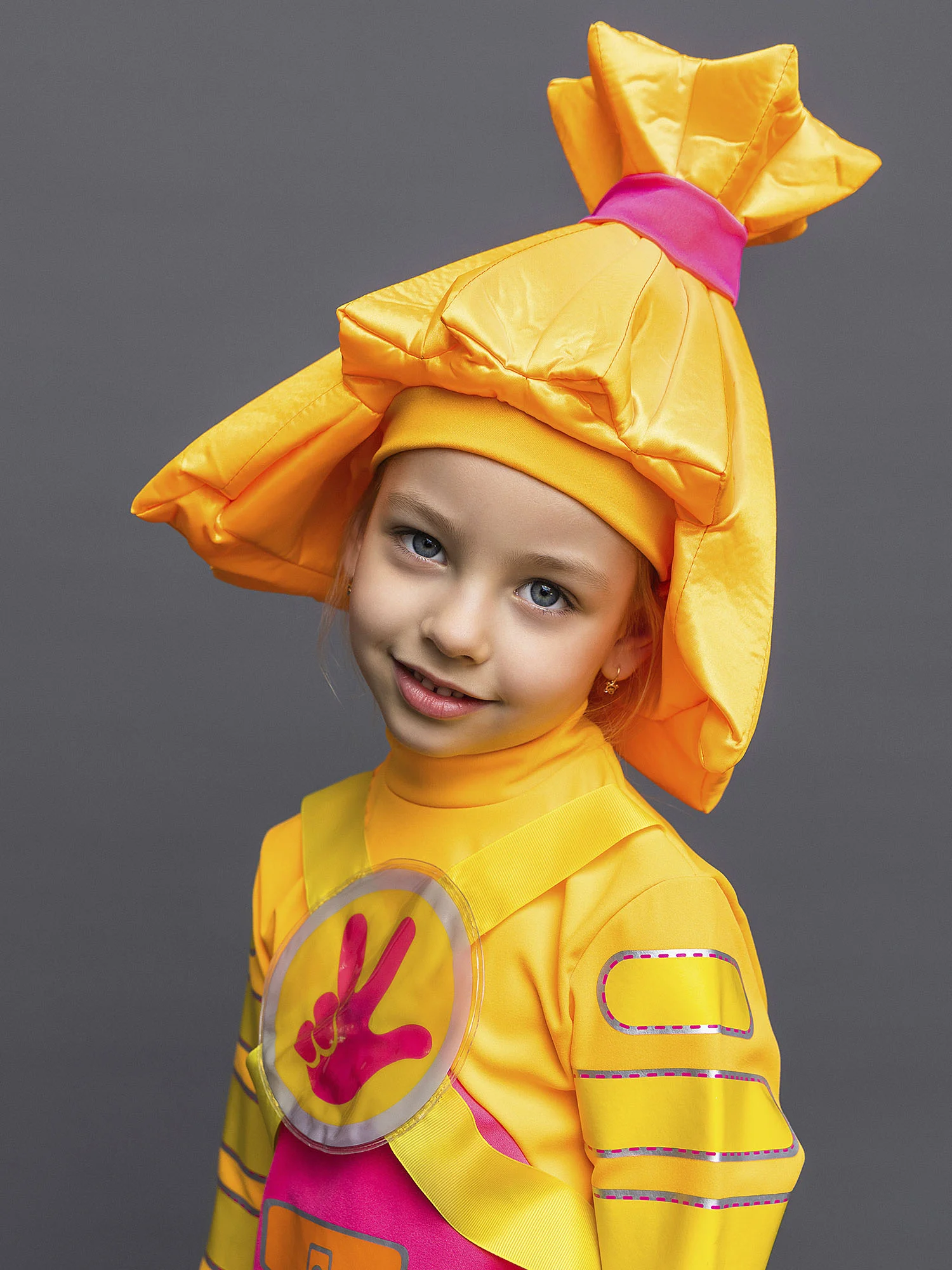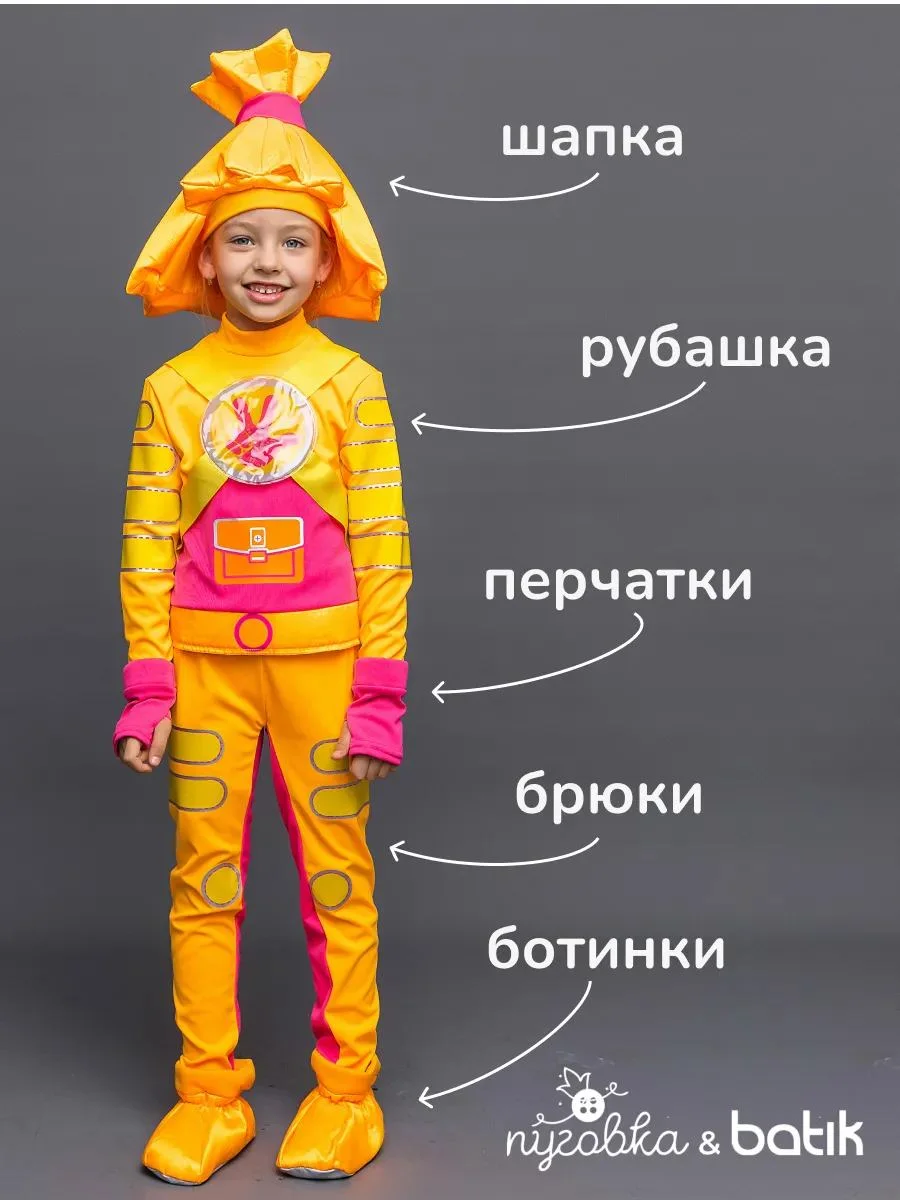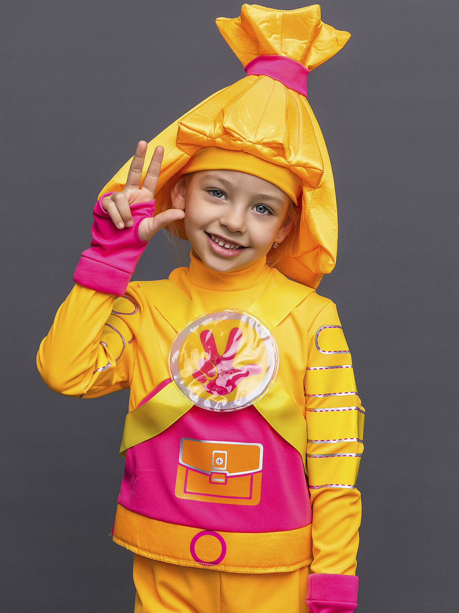 Карнавальный костюм Симки из семейства знаменитых Фиксиков понравится любой девочке, симпатизирующей этому мультсериалу. Симка является главной героиней мультика, отличается умом и решительным характером. Костюм Симки выполнен в ярко-оранжевой расцветке. В комплект входит куртка, брюки, ботинки и шапка.