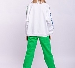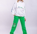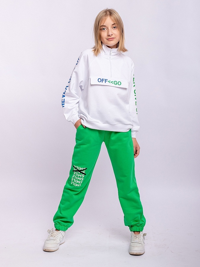 Анорак трикотажный из футера с длинным рукавом белый. Застежка-молния, высокий воротник, вышитые надписи.