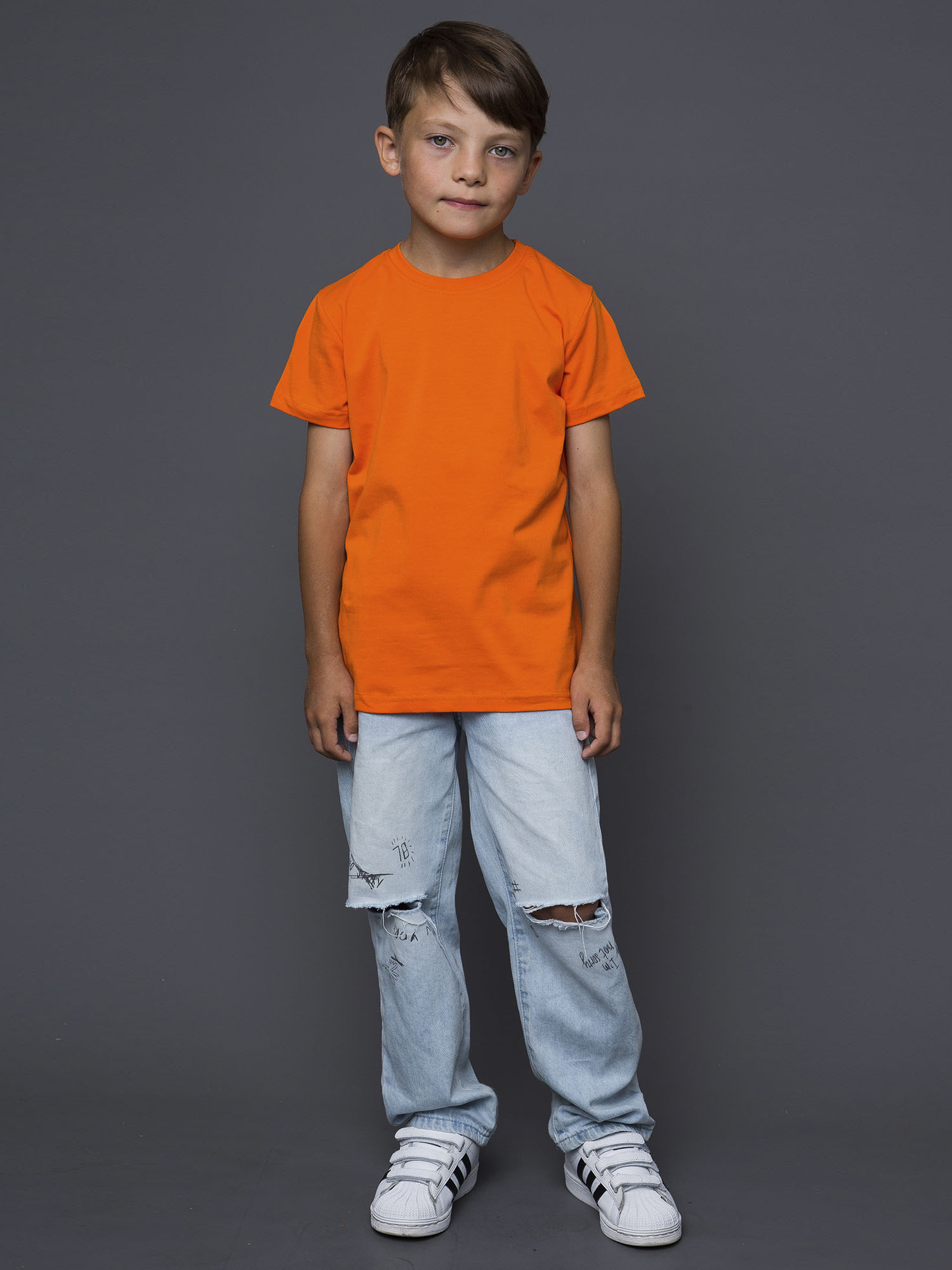Яркая детская футболка оранжевого цвета с коротким рукавом. Мягкая и комфортная футболка из качественного супрема пенье, которая не сковывает движений и позволяет коже дышать. Эластичная ткань приятна на ощупь и сохраняет форму даже после многочисленных стирок. Насыщенный оранжевый цвет поднимает настроение и делает образ ярким и стильным. Универсальный фасон легко сочетается с шортами, джинсами, юбками и спортивными брюками. Идеальный вариант для повседневной носки, активных игр, прогулок и отдыха. Футболка не выцветает и долго сохраняет насыщенный оттенок.