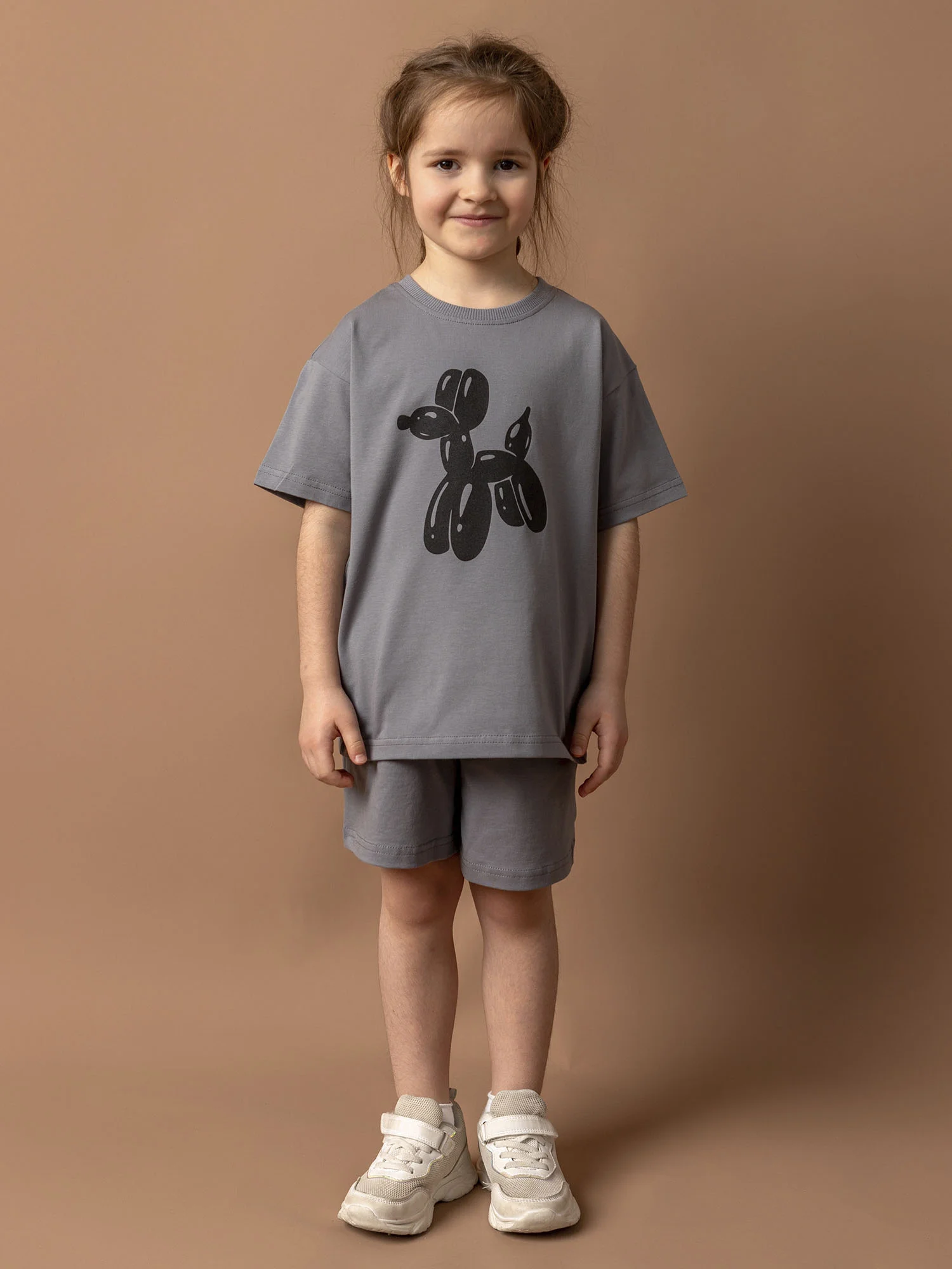 Футболка для девочки с коротким рукавом графит — стильная базовая модель. Мягкий материал и комфортный крой обеспечивают удобство в носке. Отлично дополняет повседневные образы.