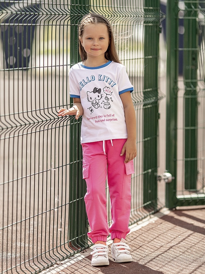 Футболка для девочки белая с коротким рукавом Hello Kitty.