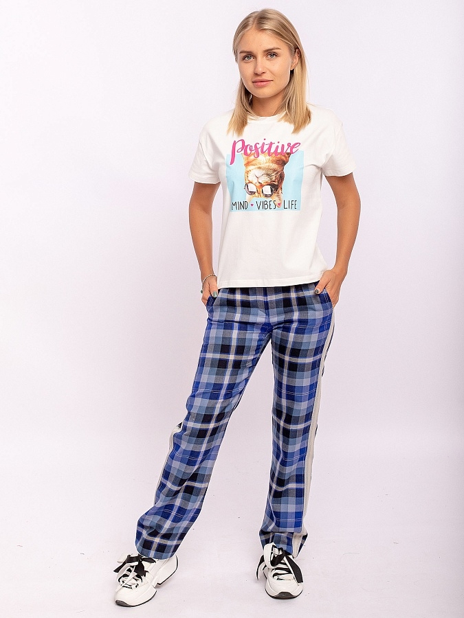 Футболка для девочки с коротким рукавом белая. Базовый элемент гардероба детей и подростков. Стильная футболка из футера с принтом в виде котика.