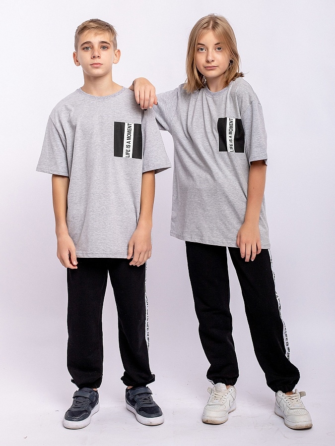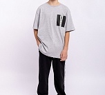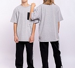 Футболка с коротким рукавом из футера серая. Акцентный элемент на груди с надписью.