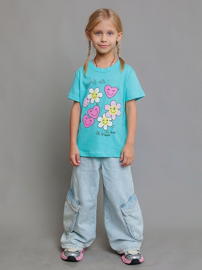 Футболка с коротким рукавом для девочки голубая из натурального хлопка. Футболка детская с ярким принтом от бренда batik. Повседневная футболка для детей и подростков идеально подходит для похода в садик, школу, для занятий физкультурой и спортом, а также в качестве универсальной домашней или пляжной одежды.