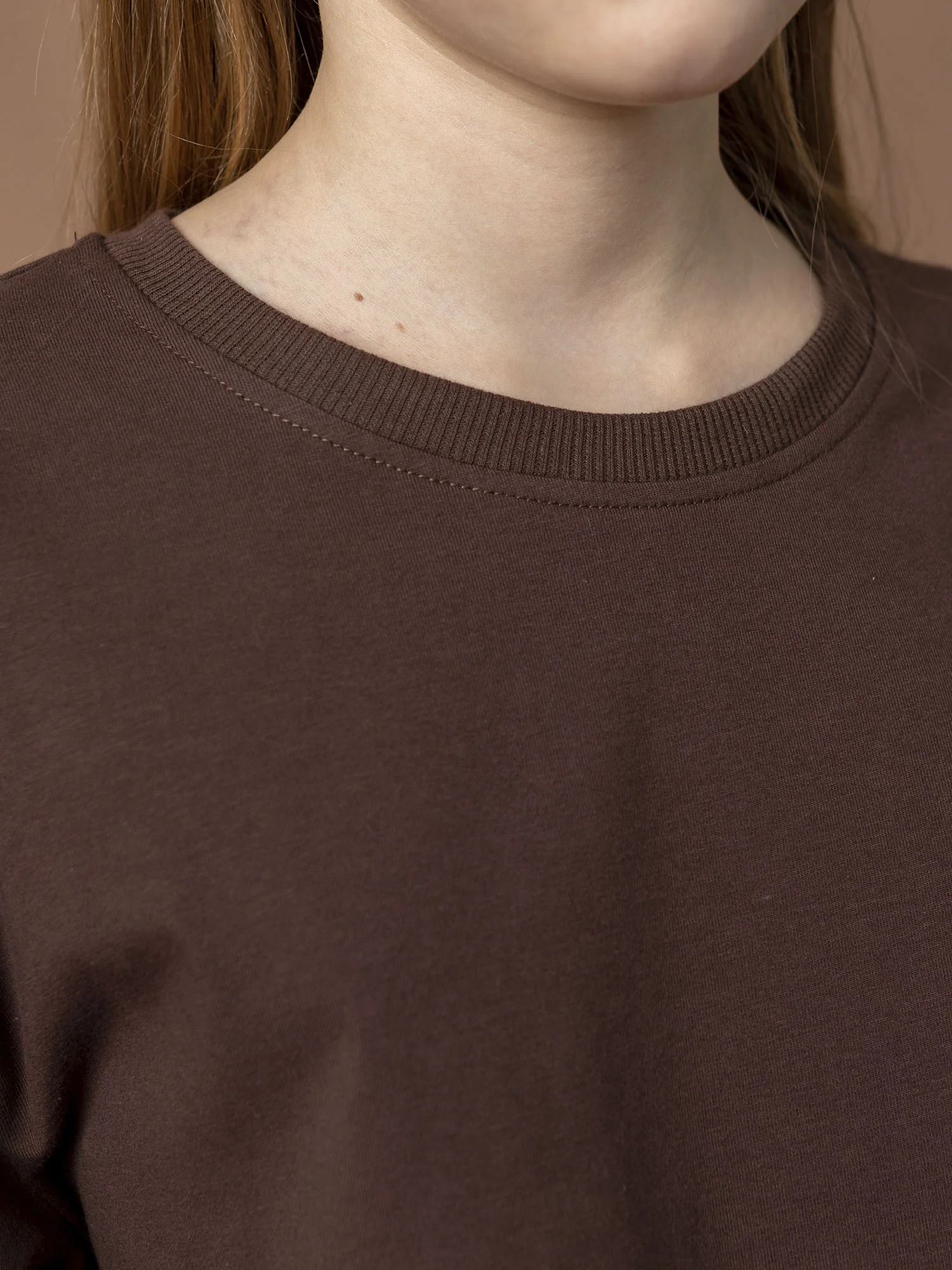 Футболка унисекс с коротким рукавом шоколад — стильная базовая модель. Мягкий материал и комфортный крой обеспечивают удобство в носке. Отлично дополняет повседневные образы.