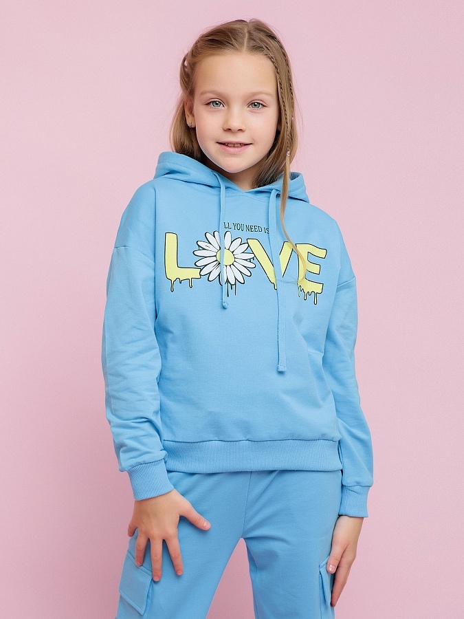 Худи укороченное для девочки голубое с капюшоном. Худи детское от batik выполнено из петельчатого футера без начеса. Незаменимая вещь в гардеробе ребенка.