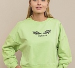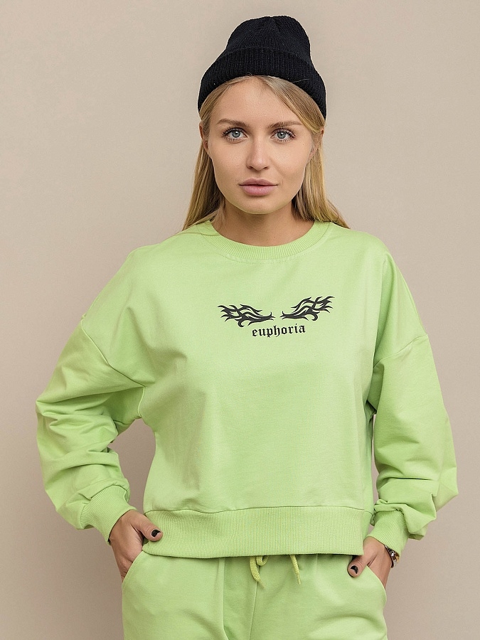 Свитшот укороченный из футера для девочки в яркой салатовой расцветке. Свитшот из натурального хлопка с лаконичным принтом на груди и мягкими эластичными манжетами. Спущенная линия рукава, крой оверсайз.