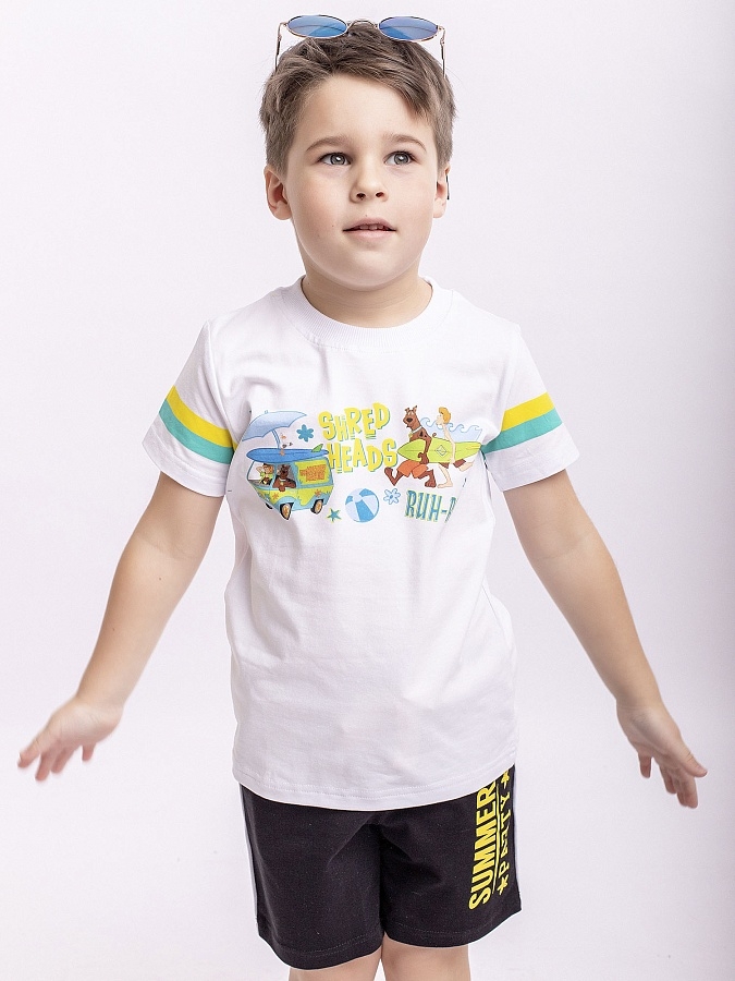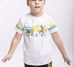 Футболка для мальчика белая с коротким рукавом и рисунком.