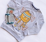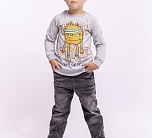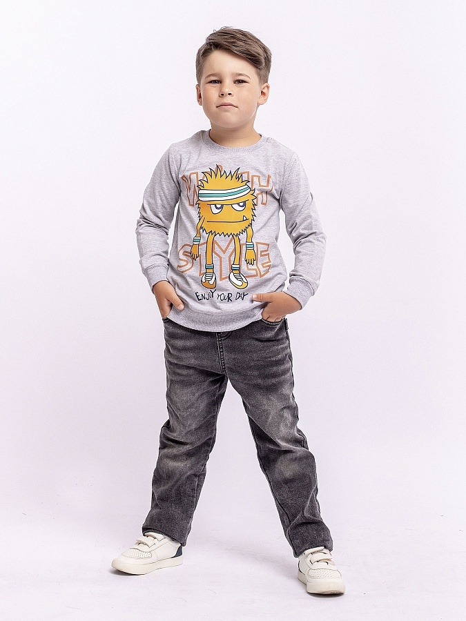 Лонгслив для мальчика серый с длинным рукавом и принтом спереди.