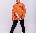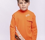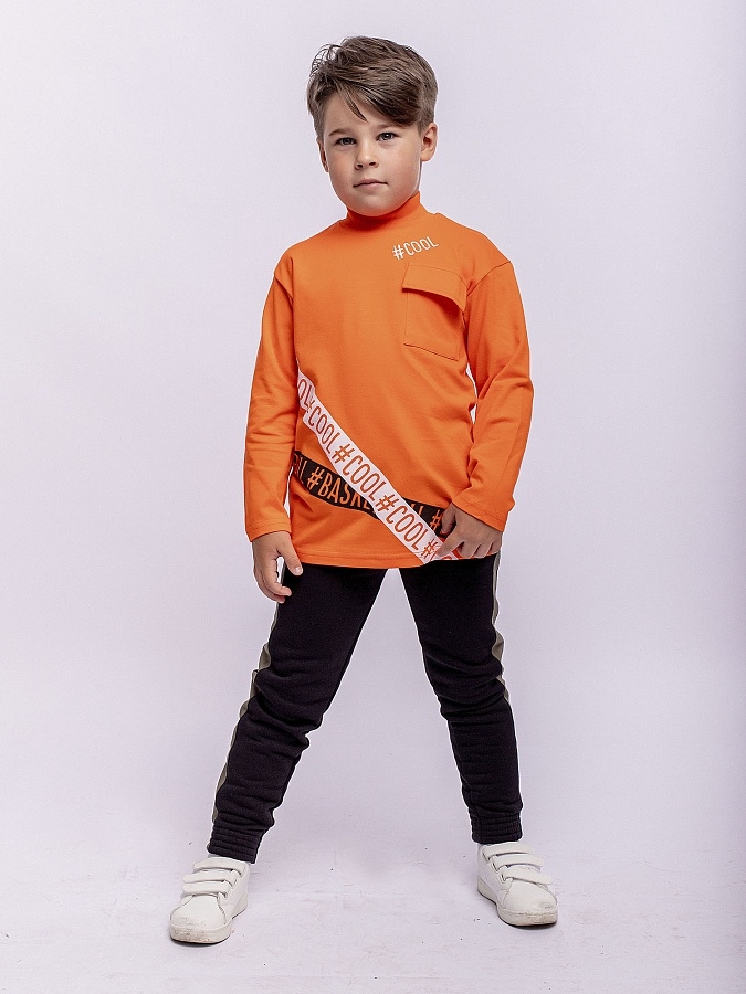 Лонгслив оранжевый для мальчика с воротником и карманом на груди.