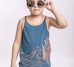Майка для мальчика синяя с оранжевой окантовкой.
