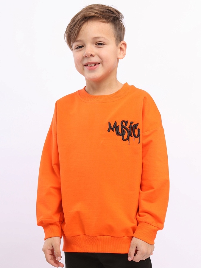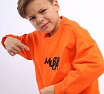 Свитшот (пуловер) для мальчика оранжевый из футера. Стильный свитшот с вышитой надписью на груди станет любимым предметом одежды в гардеробе вашего модника. Рукава длинные, на мягком трикотажном манжете. Модель хороша как для встреч с друзьями, прогулок, так и для повседневной носки.