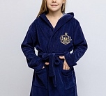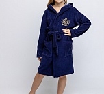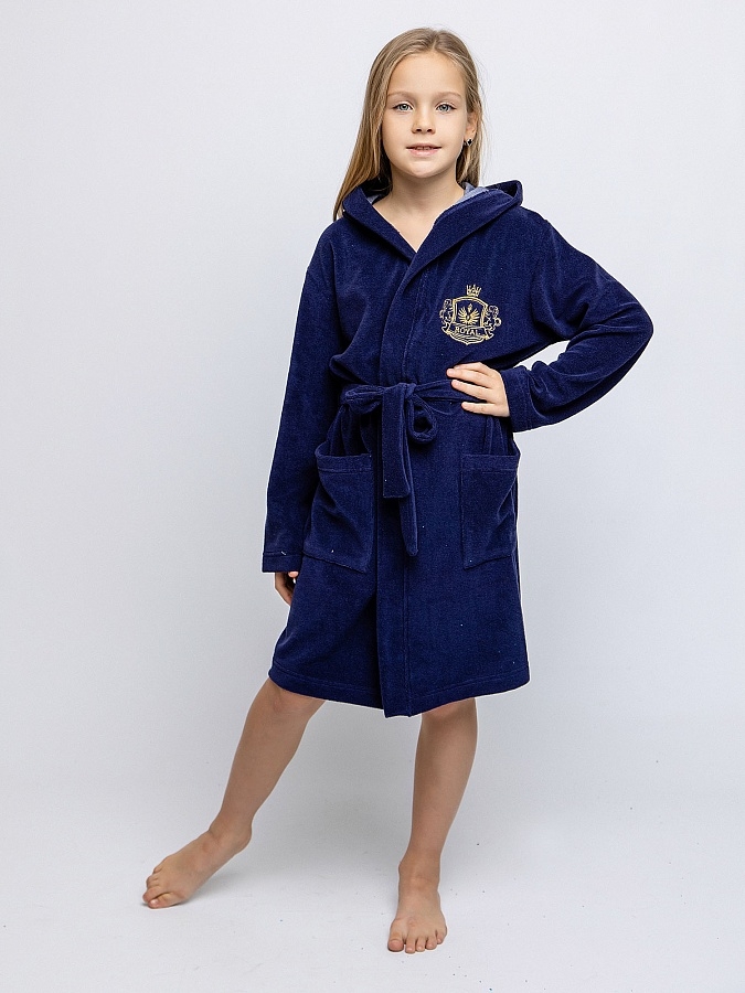 Халат махровый синий из односторонней махры с поясом и капюшоном. Накладные карманы по бокам, вышивка на груди. Для изготовления халатов мы используем только сертифицированные и качественные материалы и выбираем лучшие махровые ткани из хлопка, которые прекрасно впитывают воду и очень приятны к телу.